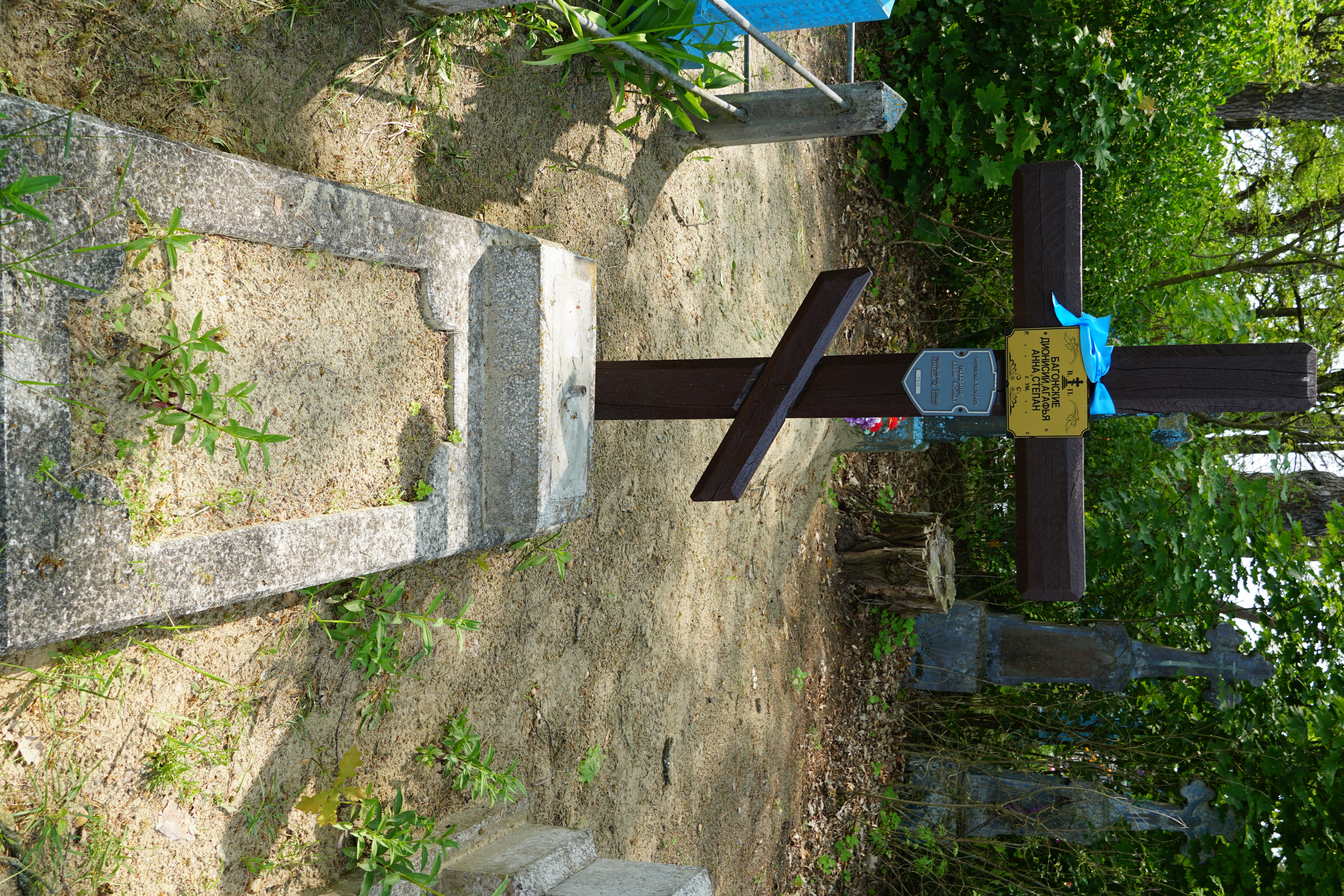 Памятник представлен деревянным крестом и надгробием из мраморной крошки. Установлен Государственный знак «Пахаванне ахвяр войнаў»