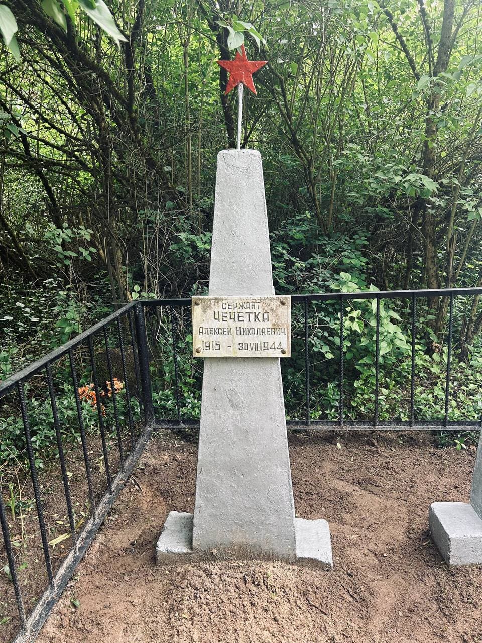 Захоронен Чечетка Алексей Николаевич, родился в 1915 году в Приморском крае, сержант, командир отделения 67-го стрелкового полка 20-й стрелковой дивизии 20-го стрелкового корпуса 28-ой армии, был ранен в ходе Люблинско-Брестской наступательной операции, умер в госпитале 30 июля 1944 года. Историко-документальная хроника Брестского района «Память»: «…Из оперативных сводок 20-й стрелковой дивизии. 20-я стрелковая барановичская дважды краснознаменная ордена Суворова дивизия 20-го стрелкового корпуса на 23 июля 1944 года имела в своем составе 5065 бойцов и командиров, представителей 37 национальностей Советского Союза. Дивизия, находясь во втором эшелоне, попробовала выйти на Брест, но затем резко ушла от города на север и заняла полками оборону: 265 стрелковый полк 26 июля 1944 г. у Зборомирово, а 27 июля у д. Сычи, 174-й стрелковый полк – Мотыкалы (колония), Раковица, 67-ой стрелковый полк – Нехолсты, Острув (где 27, 28 июля занял круговую оборону)... »