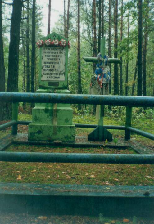 Памятник из бетона высотой 1,5 м, рядом металлический крест. Ограда из металлических труб. На памятнике надпись: «Погибшие от рук фашистских захватчиков в 1942 году работники железнодорожного транспорта». Захоронено 12 жертв войны: 10 фамилий установлено, 2 не установлены.
