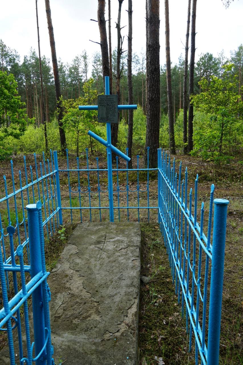 Выполнен из металла. Установлен металлический крест. К кресту прикреплена металлическая плита с надписью. Ограждение металлическое. Надпись на памятнике «Здесь покоится семья Горщариков, зверски расстрелях фашистами 14.09.1942 г. Горщарик Алексей Петрович, Ульяна И. –жена, Василий А. – сын, Анна А. – дочь, Николай А. – сын, Агафья, Михаил, Вера, Петя».