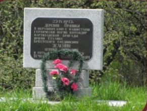 Зеленин Леонид Петрович, родился в 1910 году в д.Архангельское Боброво-Дворского района Курской области, участник советско-финляндской войны. С 1942 года – комиссар отряда им.Чернака, с июля 1943 года – командир бригады им.И.В.Сталина. Погиб 23 сентября 1943 г. вместе с пятью партизанами своей бригады. Посмертно награжден орденом Красного Знамени. Героическое место боя партизан на юго-западной окраине деревни Орлянка. Здесь 23.09.1943 г. в бою с гитлеровцами героически погибли командир партизанской бригады им. И.В.Сталина Брестского партизанского соединения Леонид Петрович Зеленин и 5 его боевых товарищей. В 1975 году на месте боя установлена стела. 19 сентября комбриг Зеленин и комиссар бригады Шковорода надолго задержались у костра… Между ними шла неторопливая беседа. Говорили о войне, о партизанской борьбе, с каждым днем разгоравшейся все ярче и ярче, о том, как заживут советские люди после победы над фашистской Германией. Не знали и не думали тогда комбриг и комиссар, что встретиться им уже никогда не придется. Зеленин ушел, а через несколько дней дошла страшная весть: комбриг и все сопровождавшие его партизаны погибли… Осенью 1943 года в д.Орлянка пришли партизаны. Среди них был комиссар бригады Зеленин. Идя на боевое задание, они решили переночевать в деревне, а утром уйти. Под вечер зашли в крестьянский дом Франика. Хозяйка гостеприимно приняла партизан, усадила за стол. Как бы извиняясь за скромный ужин, сказала: «Не гневайтесь, дороженькие. Що маем, то и вам даем.» Поев, партизаны поблагодарили женщину, встали из-за стола. И в это же время в окно дома полоснула пулеметная очередь. Но пули никого не задели. «Нас кто-то предал, - сказал Зеленин. Стреляйте на ходу, будем отходить к лесу». Но отойти, к сожалению, не удалось. Дом был оцеплен плотным кольцом карателей. Пули подожгли соломенную крышу, и дом вспыхнул. Партизаны, стреляя, бросились к двери: Саша Березин, Вася Залегошинский и Митька-старшина. Завязался бой горстки партизан с крупным отрядом гитлеровцев. Погиб один боец, второй, третий. Раненный в плечо Зеленин не выпустил из рук автомат. Меткими очередями он продолжал косить наседавших карателей. Сражен вражеской пулей последний боец. Зеленин остался один. Но скоро смолк и его автомат. Отважный партизан погиб. (историко-документальная хроника «Память. Малоритский район». Мн., Ураджай, 1998, стр.303-304, официальный сайт ГУК «Малоритская районная централизованная библиотечная система»).