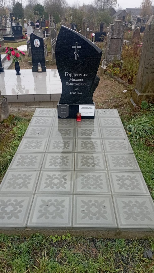 Гордейчик Михаил Дмитриевич, 1905 года рождения, в военное время работал парикмахером. Иногда помогал партизанам, кормил их. 2 февраля 1944 г. члены польского бандформирования забрали Гордейчика М.Д. и привезли в д.Березовцы Щучинского района, со связанными руками посадили в яму, где и расстреляли за помощь партизанам. После Гордейчик М.Д. был похоронен на кладбище в г.п.Острино.